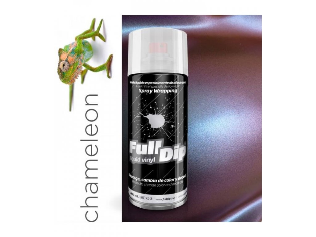 Chameleón gumové spreje od Full Dip® v výsledném matném povrchu s měnící se barvou. Sprej vytváří v několika vrstvách odolnou vrstvu, kterou je možné odstranit bez poškození původního povrchu. Sprej v množství 400ml je dostupný ve více barevných provedeních. Na nastříkaný matný povrch lze nanést Full Dip Glossifier a povrch se stane lesklý.