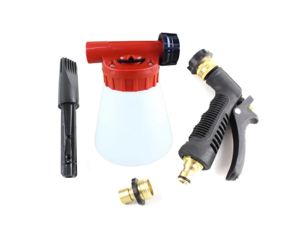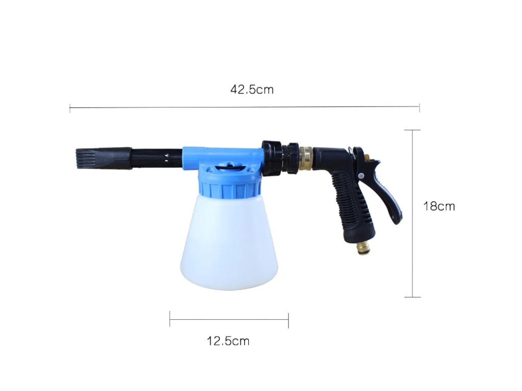 Chcete vytvářet dostatek pěny a máte jen jednu hadici? Podívejte se na tento produkt. Jedná se o pistoli, napěňovač, která se připojuje na jakoukoli klasickou hadici a pomocí systému škrcení tekutiny dokáže vytvářet bohatou pěnu bez potřeby kompresoru nebo wapky. Potřebný tlak vody cca 3 bary.